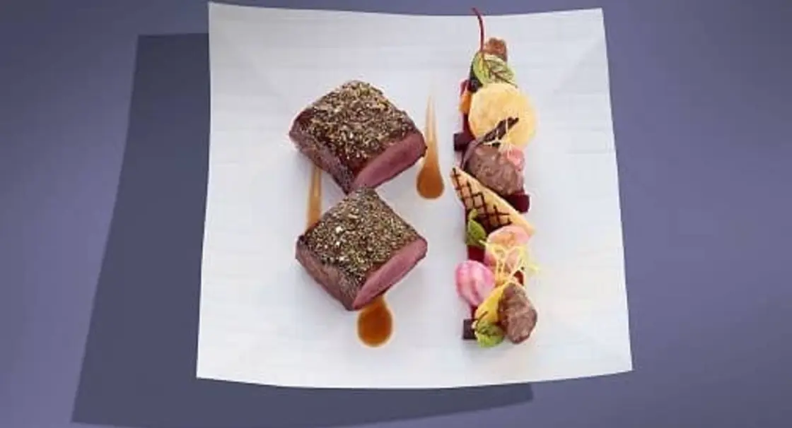 Détailler les médaillons de chevreuil, détailler le coing en morceaux puis les grillés, faire poêler a l’huile d’olive les minis betteraves.